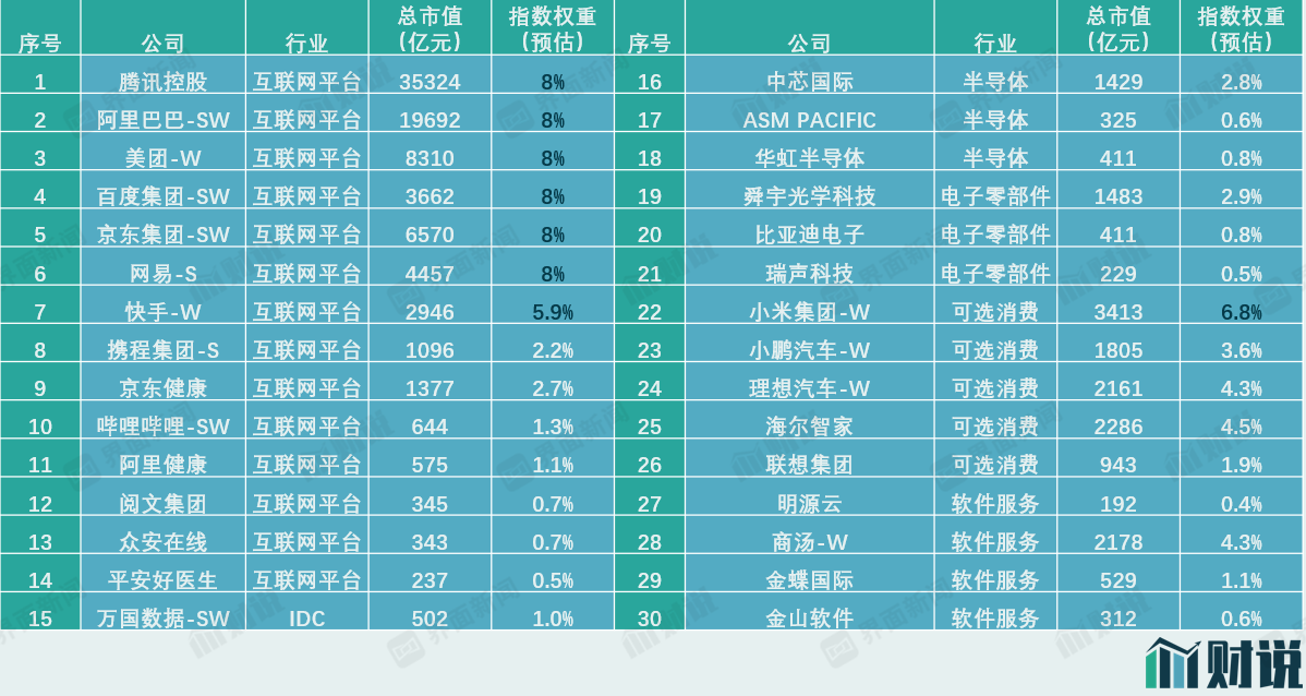 这也意味着,互联网公司的股价走势将对恒生科技指数起到主导作用。