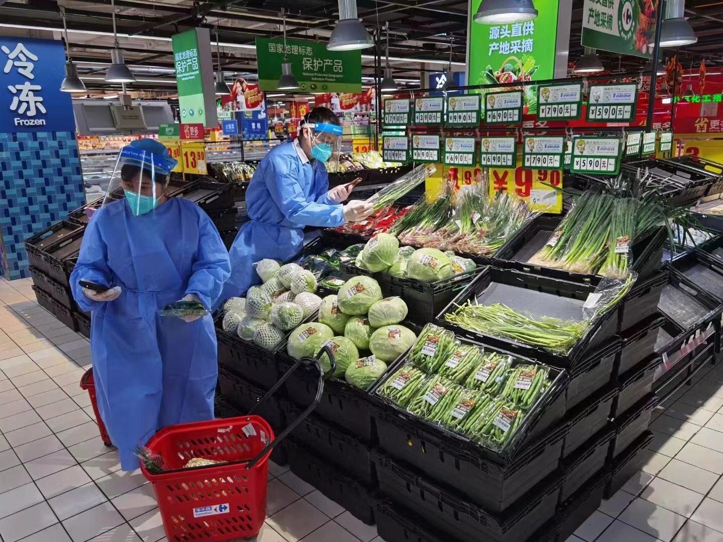 为了保障市场供应,蔬菜集团旗下批发市场还积极调运广西、云南、福建、海南等南方地区的花色蔬菜,并组织山东等北方地区的暖棚蔬菜供应上海,目前,蔬菜集团日均蔬菜供应量6000吨以上,保持平稳。“到目前为止,集团的蔬菜、猪肉、水果等农产品货源能保证上海市场需求,做到量足、价稳、食安。”