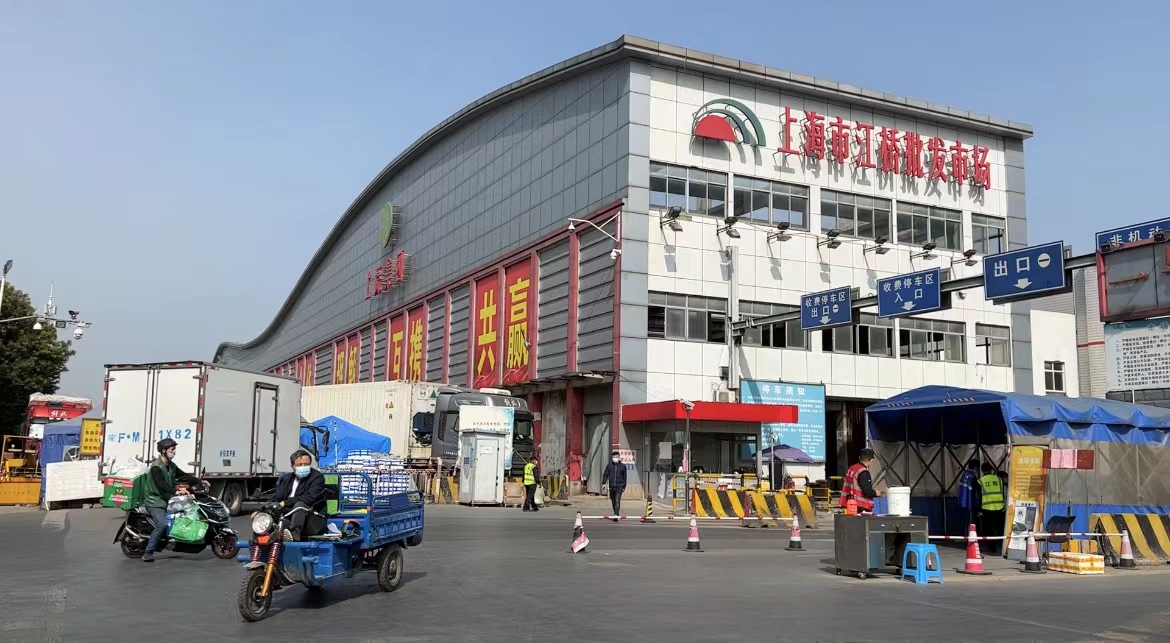 上海嘉定区曹安路1936号,上海市江桥批发市场,来自全国各地的蔬菜货车川流不息地涌入。这里是上海最大的郊菜批发市场,也是上海郊菜价格的风向标。