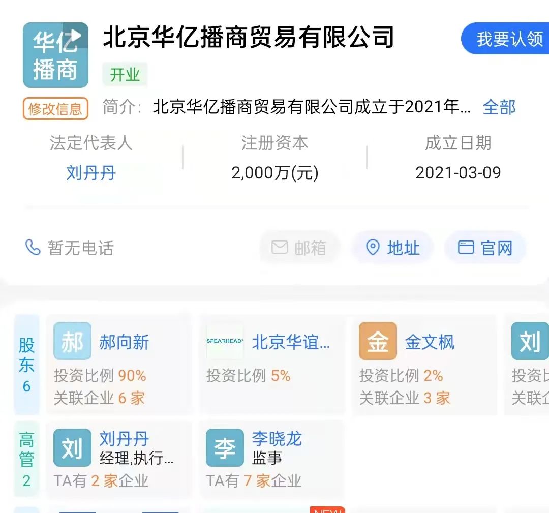 华亿播成立于2021年3月份,是辽宁华亿播商贸有限公司的控股母公司,实际控制人为郝向新,股权穿透后可以看出,上市公司*ST嘉信(300071.SZ)也是该公司股东。