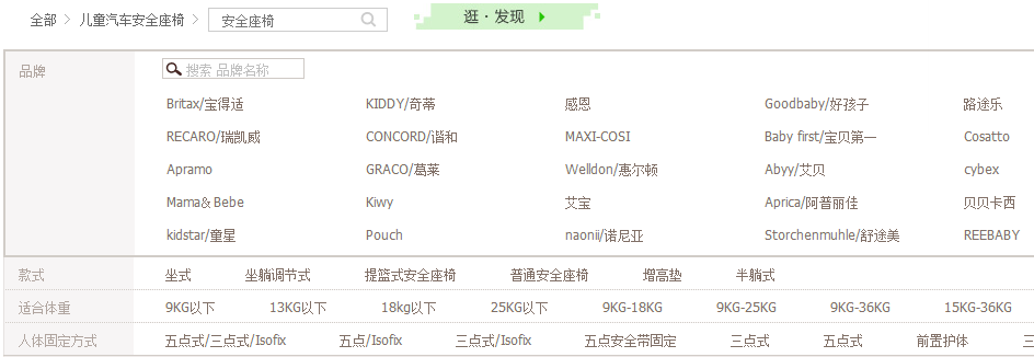 第二,如果你在类似天猫、京东这样的网络平台搜索,你会发现安全座椅的品牌基本上都是没太听过的名字,它们是来自细分市场的专业品牌,而没有那种跨几个行业通吃的“大名牌”。比如你想买拖布、胶带、净水器等等,如果你对细分市场不了解,但3M、飞利浦这样的品牌,基本上可以放心去买。而买儿童安全座椅,你在名单既找不到阿迪达斯、耐克,也找不到3M。