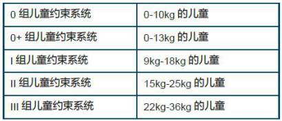 根据GB27887-2011(我国的 《机动车儿童乘员用约束系统》国标,基本参数和成熟的欧标一致)儿童约束系统有如下分组: