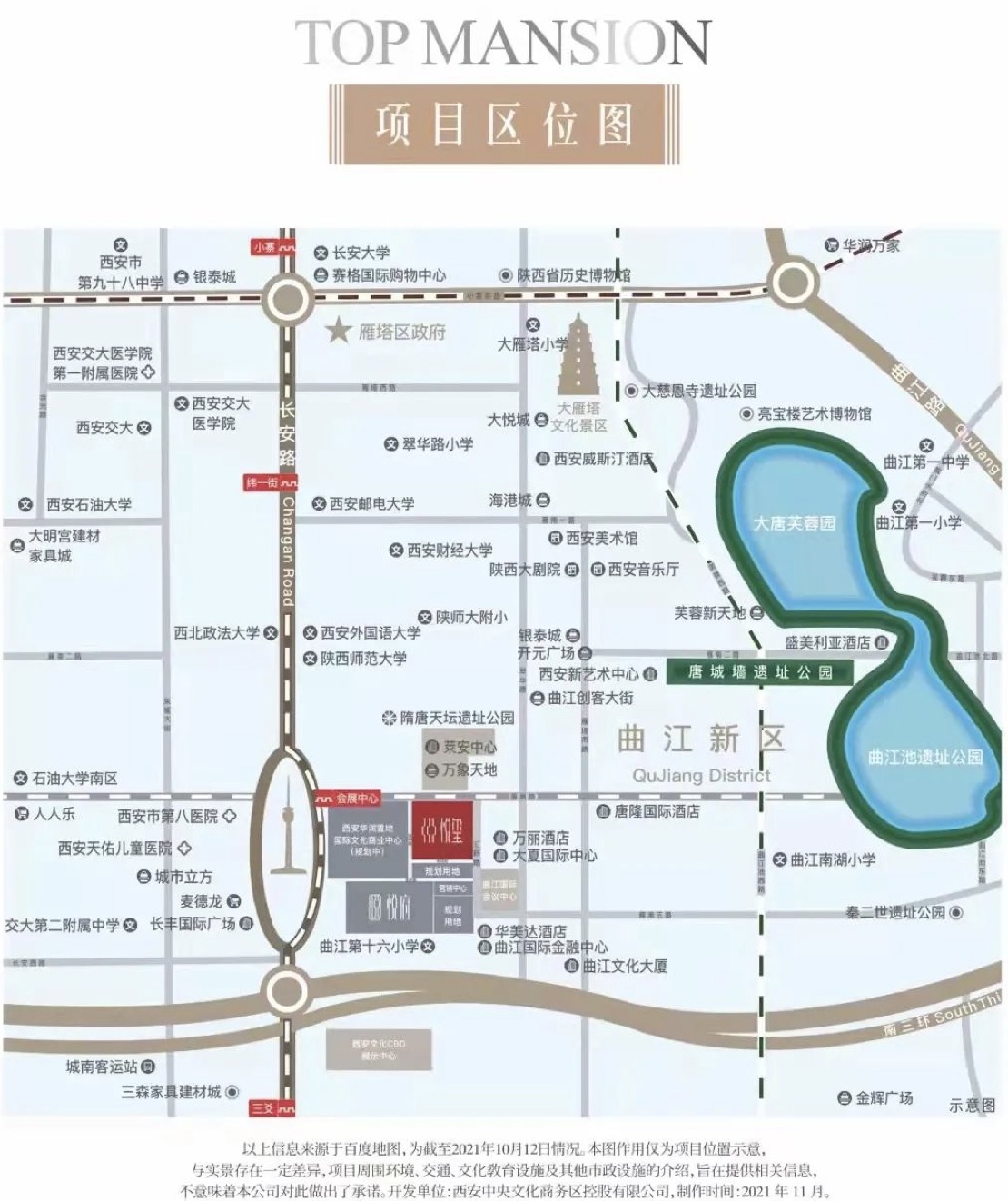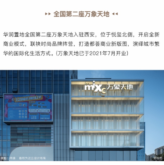 华润悦玺是华润悦府A地块的二期,相比一期悦府,华润•悦玺项目位于雁展路沿线,与西安万象新天地、莱安中心一路之隔,周边还有麦德龙等,同时项目周围有一圈配套商业,南侧是规划中的国际文化艺术展览中心。
