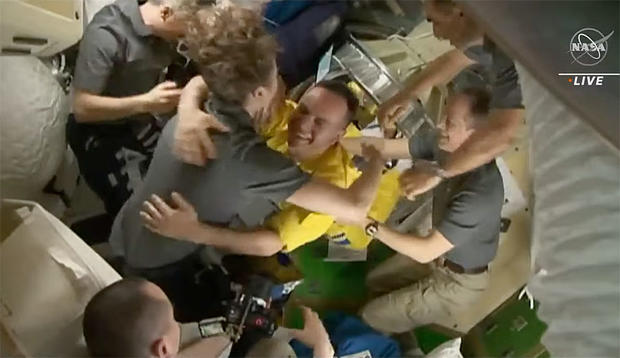国际空间站由美国、俄罗斯、日本、加拿大和欧洲共同运营。三名俄宇航员受到了空间站欧美同事的热情欢迎。