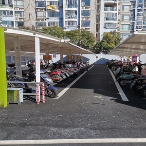 增设的智能非机动车停车棚方便了经营户、顾客和附近居民