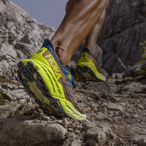 Speedgoat 5在沿用Speedgoat系列鞋底厚度和HOKA标志性滚动平衡科技的同时,采用比上代更轻的中底复合材料和更舒适耐磨的双层提花网纱鞋面。