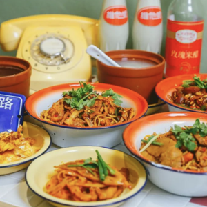像内参君常吃的子固路老南昌拌粉,整体走怀旧风格,环境是80年代的复古风,餐具是古早的搪瓷盆。