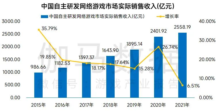 中国自主研发网络游戏实际销售收入达到2558.19亿元,同比增长6.51%