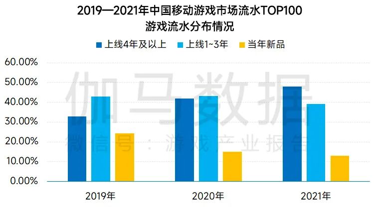 2021年由于疫情导致的“宅家经济”红利逐渐消退,国内移动游戏市场在市场实际销售收入和用户规模的增速方面均出现了下降,移动游戏用户群体趋向饱和,整体进入存量市场。与此同时,国内移动游戏市场的产品集中度持续上升,流水越来越集中在持续运营多年的头部产品上,新产品获得的市场份额有限。