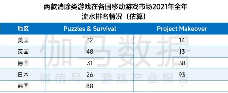 2021年,针对海外市场特定需求进行定制开发的游戏产品取得了较好的商业成绩,面向海外深度定制的开发理念得到重视。作为2021年国产游戏出海的黑马,《Project Makeover》和《Puzzles &Survival》根据欧美市场的特点基于其特定需求进行了开发,填补了国产移动游戏在美国消除类游戏市场的空白。其中《Puzzles &Survival》融合了当地受欢迎的僵尸生存题材和SLG玩法,《Project Makeover》则在消除玩法的基础上融入了换装+养成的模式,国产游戏在欧美消除类游戏市场中取得了新的突破。可以预计的是,在游戏出海的大环境下,基于海外市场特定需求的定制研发和本地化策略将成为国产游戏海外竞争力的重要来源。