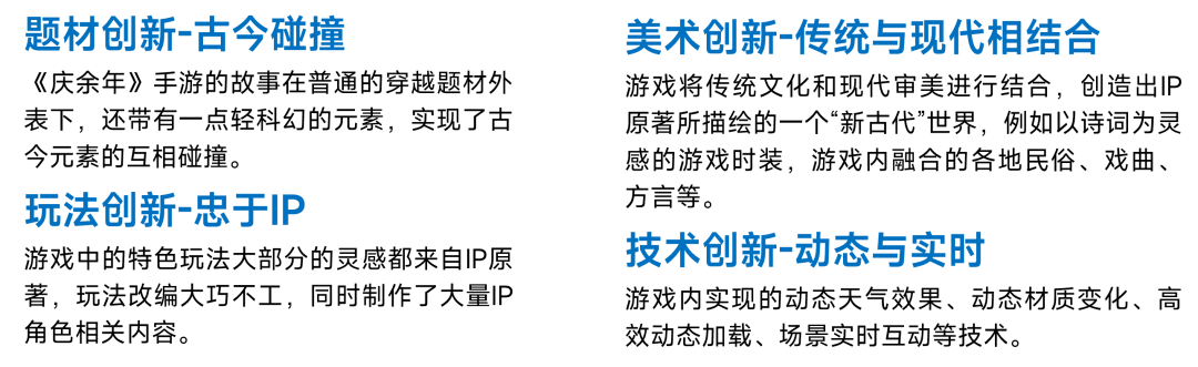 游戏的核心玩法一直是游戏竞争力的重要评价标准,在游戏精品化的要求下,游戏用户对游戏核心玩法差异化的要求也越来越高。2021年的部分新游通过深度的玩法融合显著提升了游戏产品的竞争力,多品类游戏之间的玩法融合成为玩法创新的重要方式。
