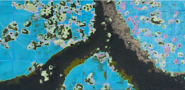 被称为“放置绘画”的方案优化了AI在复杂地形的行动。在这一方案中,岩石被绘制成围绕它们的高成本区域,AI将根据不同路线的成本决定行进路线,鼓励AI绕过岩石而非直接越过岩石。