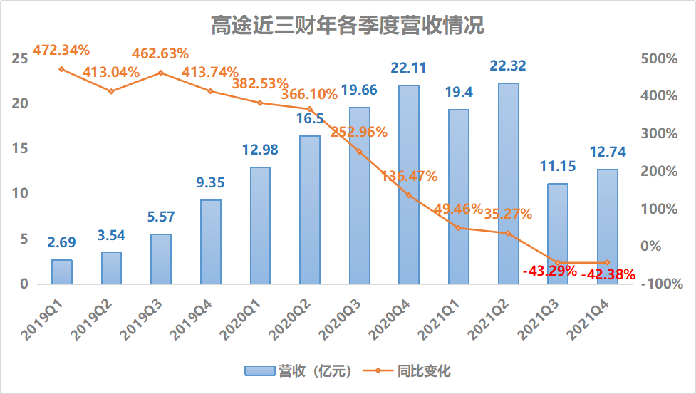 与净利润呈现的积极态势不同,第四季度高途的营收规模出现了大幅收窄——单季度录得营收12.74亿元,去年同期为22.110亿元,同比减少42.37%。