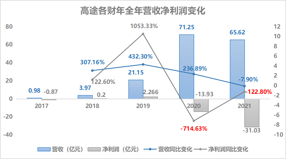 2021财年全年,高途录得净亏损31.03亿元,超出上年亏损的13.93亿元近122.80%。而这两年间,高途已累亏约45亿元,约是2018年、2019年盈利总和的18.3倍。