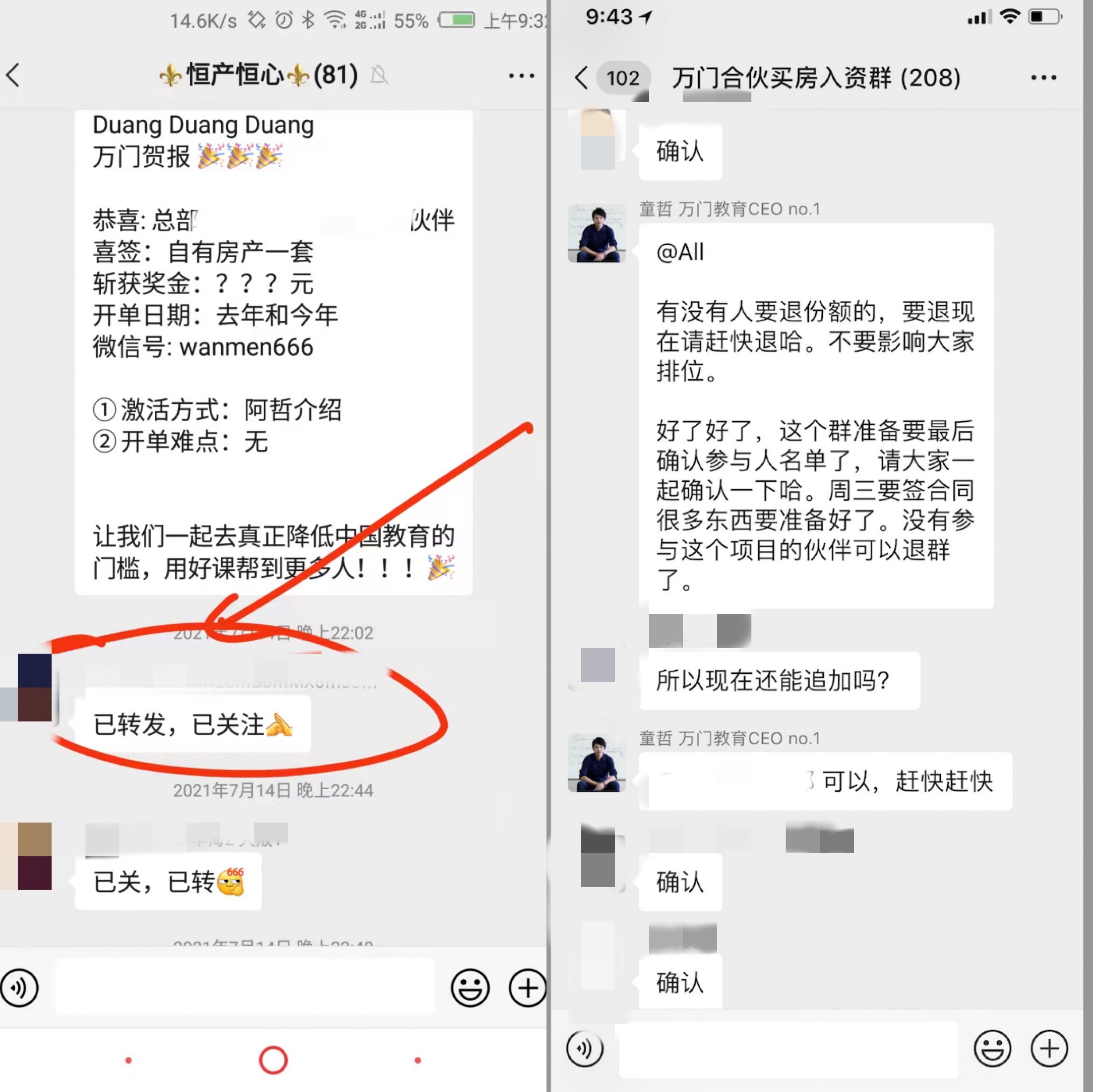 拖欠学员薪资和学员退费之外,王鑫向界面教育透露,多位万门员工曾参与童哲集资代持买房项目,即员工集资全额房款,由童哲代持买房,但具体操作他不得而知。目前,童哲已将王鑫微信删除。