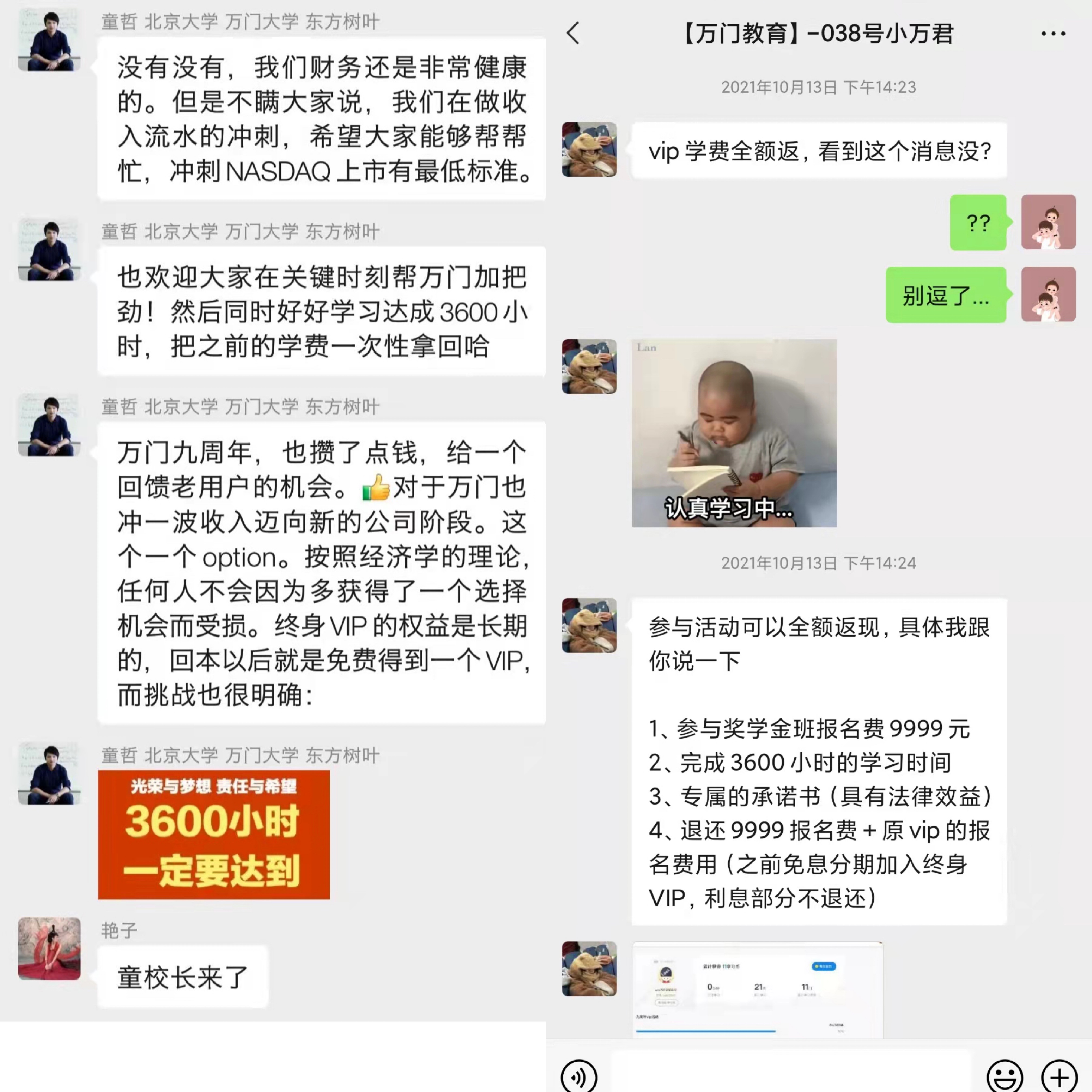 “今早,万门大学CEO童哲突然将个人微信名字改为‘小助手’,并解散所有会员群。”