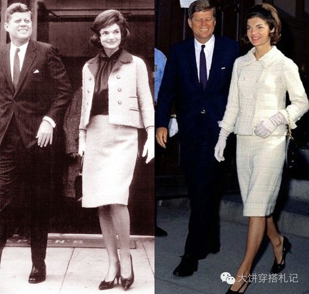 以第一夫人杰奎琳为代表的优雅派们总喜欢用精致的套装示人。套装的半裙以过膝为标准,十分端庄,也避免了因裙摆过短而造成坐下时的不雅现象,从而至始至终保持优雅的姿态。▼