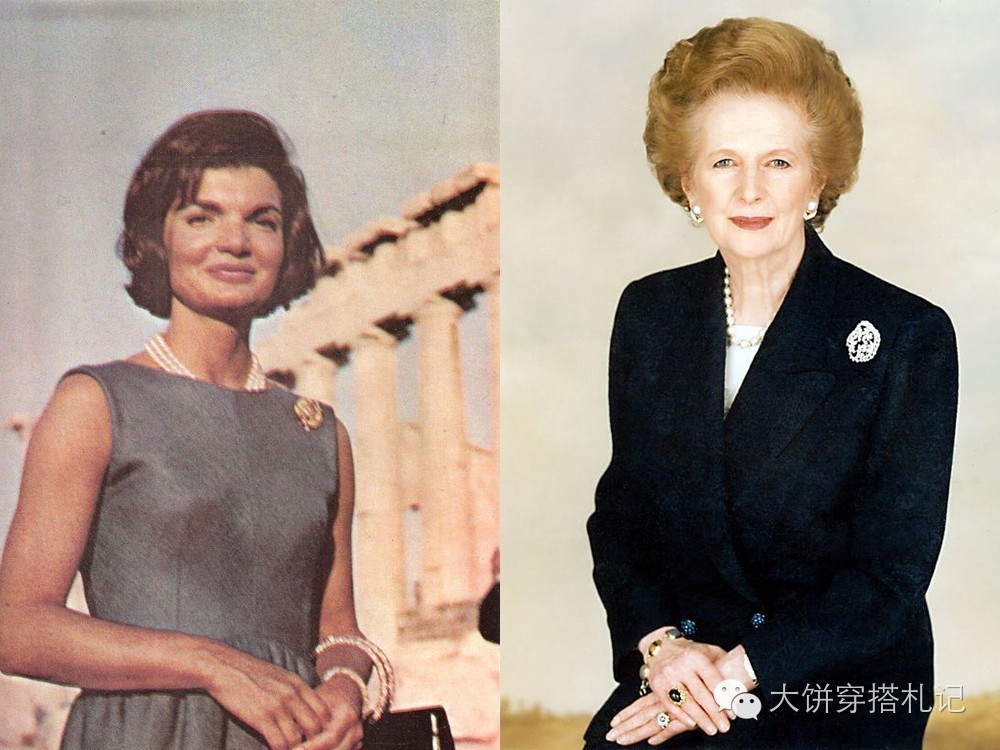 无论是日常着装还是晚宴礼服,一至三串的珍珠项链几乎从没离开过”铁娘子“的颈间。她曾在采访中提到:“珍珠能提亮肤色,让人有光彩。你若仔细观察那些穿戴整洁漂亮的女孩子,就会发现珍珠的重要性。一件普通的衣服配上珍珠,就能显得气度不凡。”▼