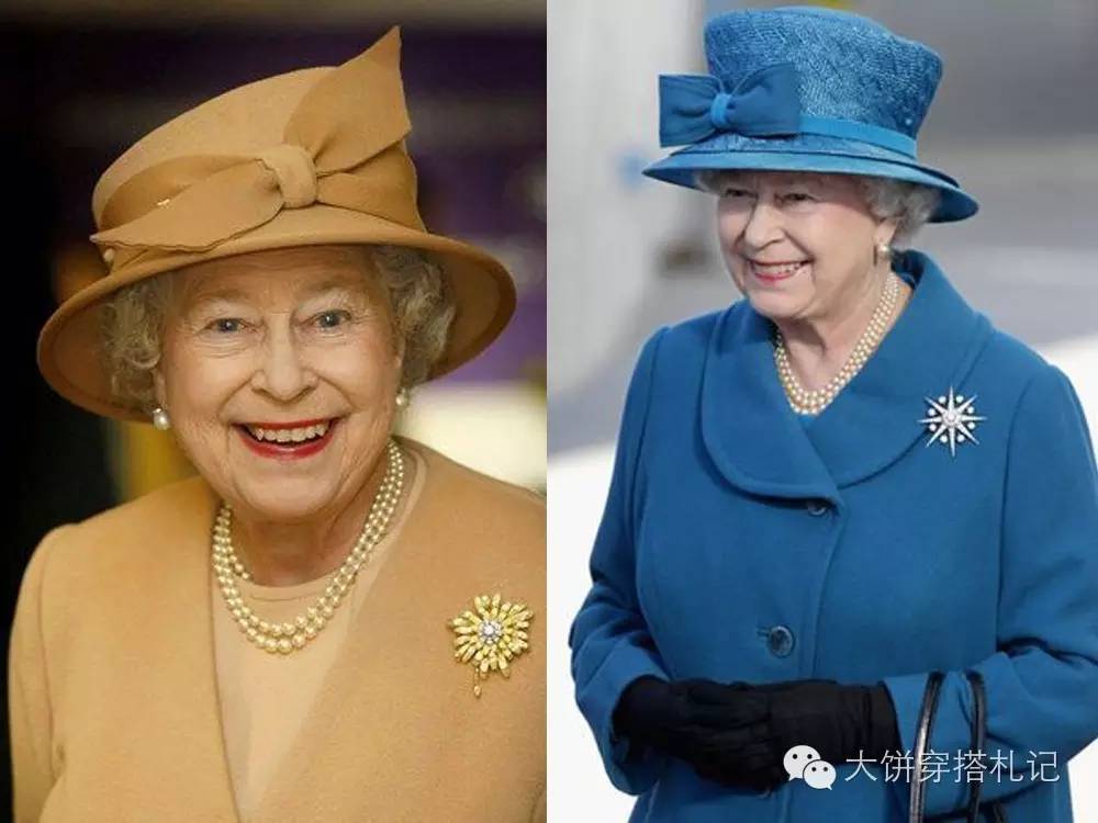 看咱们的“彩虹奶奶”和凯特王妃,是不是觉得胸针似乎已经成了英国王室的标配了。BTW,女王殿下也是很爱珍珠的呢!▼