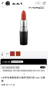 当然,丽子所能享受到的并非是最低价,cdf免税小程序标注“临期商品”字样的口红让网友惊呼:“39块钱一支的口红,就离谱。”