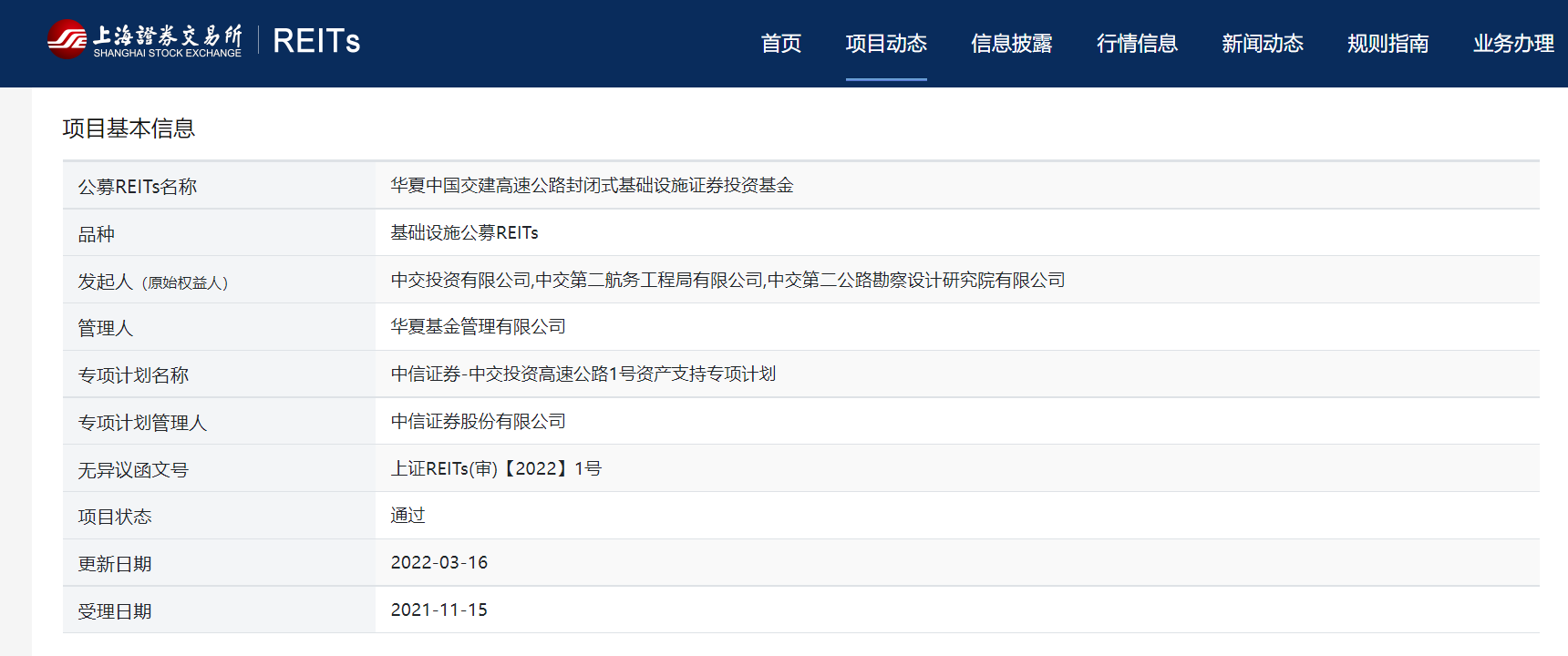 3月23日,华夏中国交建高速公路封闭式基础设施证券投资基金(以下简称华夏中国交建REIT)正式获批。这意味着国内的公募REITs队伍扩容到12只。