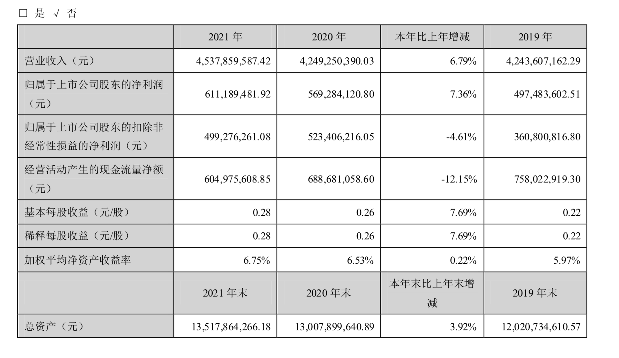 3月24日晚间,广州珠江啤酒股份有限公司(以下简称“珠江啤酒”)(002416)发布《2021年年度报告》显示,2021年实现营业总收入45.38亿元,同比增长6.79%;归属于上市公司股东的净利润为6.12亿元,同比增长7.42%;经营活动产生的现金流量净额为6.05亿元,同比下降12.15%。