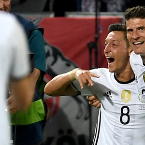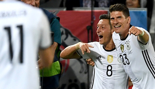 易边再战,德国队的攻势依旧不减。第54分钟,施魏因斯泰格直传,禁区内的戈麦斯带球后向后一磕,跟上的穆勒一脚劲射,皮球本来已经越过了门将布冯,却被飞身而来的弗洛伦齐用一个“蝎子摆尾”的方式神奇解围。不过德国队的进球还是在65分钟到来,诺伊尔球门球大脚开出,左路拿球的戈麦斯直塞赫克托,后者的横传尽管被博努奇挡了一下,但拍马杀到的厄齐尔还是推射破门,1-0!