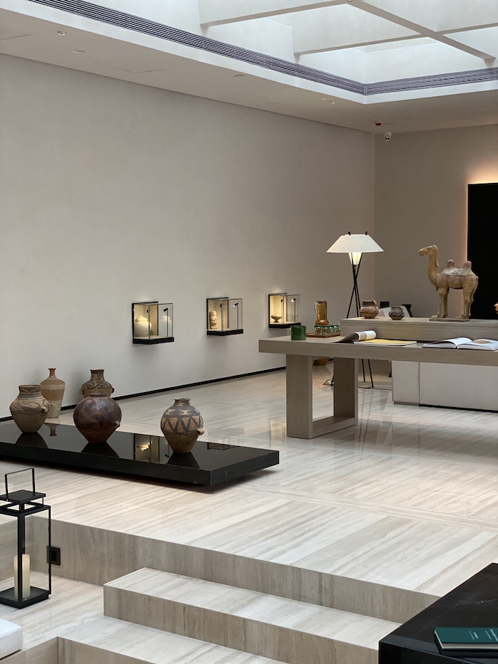 2020年,北京瑜舍对公共空间进行焕新,翻新后的前台与艺术展示空间——中庭相对而立,形成完整的大堂空间。在北京瑜舍总经理杜明硕 (Olivier Dumonceaux)看来,中庭是酒店最迷人的空间之一。“瑜舍中庭一直有着‘当代画廊’的设计概念,因此每一季都会展示不同系列的艺术作品以及前沿时尚设计,向客人展示充满新鲜文化见解的当代艺术世界。除此之外,中庭更吸引了众多国际一线品牌合作,Farfetch、Dior、Moncler、Lululemon等精品品牌均在此设置快闪店,将时尚与艺术完美融合。”