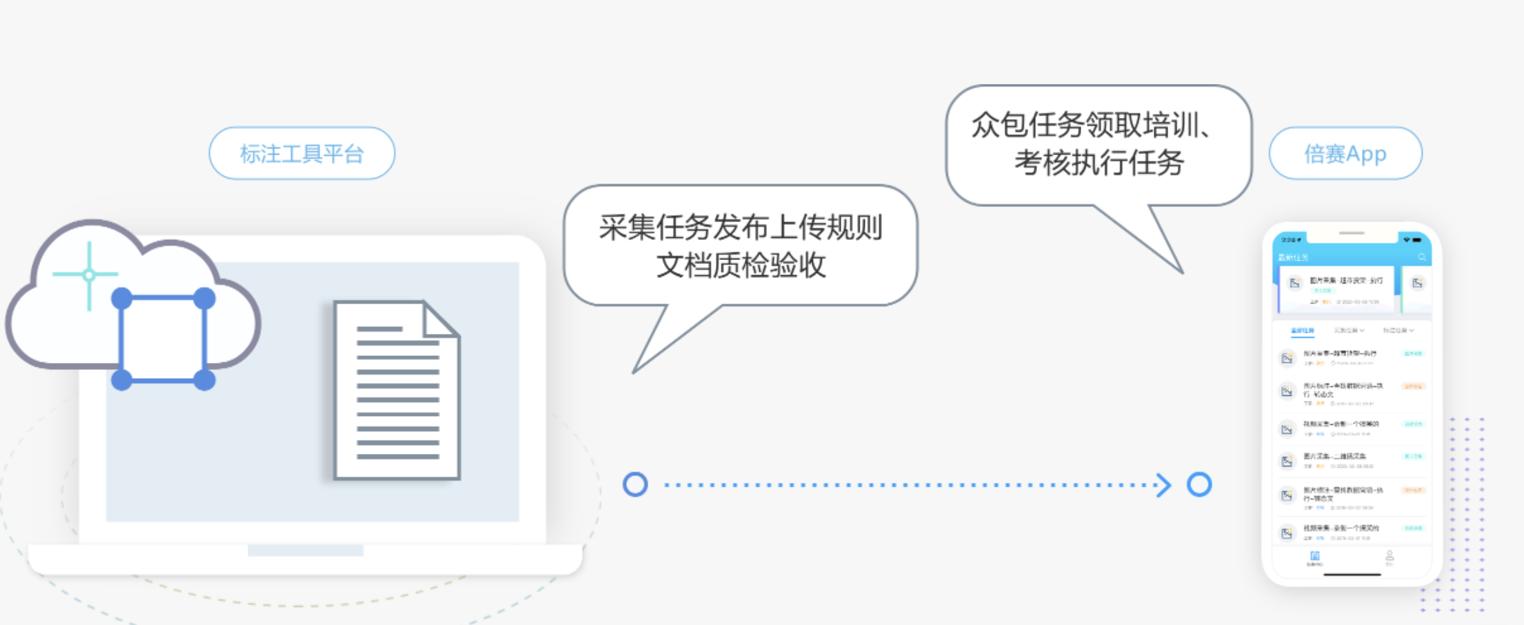 倍赛科技曾推出众包任务APP“倍赛”。据其介绍,客户通过使用BasicFinder SaaS 数据标注与采集工具平台,直接将编制好的需求文档从平台发布,需求自动同步至“倍赛APP”数据采集众包平台。“倍赛APP”上逾10万用户根据项目介绍领取任务。倍赛APP数据采集众包平台的用户需要通过在线培训和系统考核合格后方可执行任务。