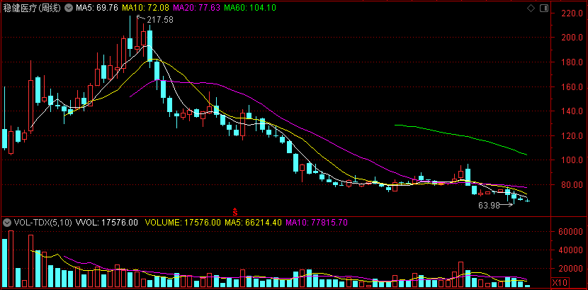 减持利空当头,稳健医疗回购的提振作用十分有限,公司股价走势仍然承压。回购启动至今,公司股价再下一个台阶至66.07元/股,跌破发行价。