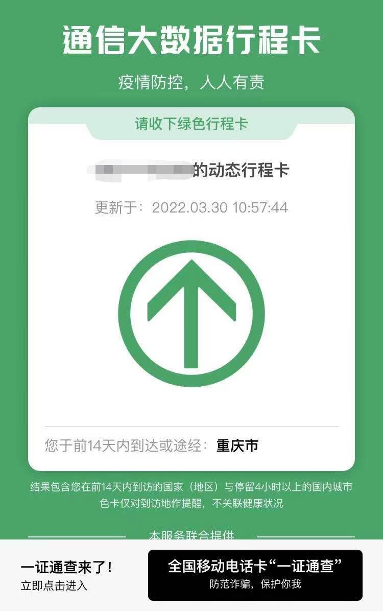 3月30日上午,随着重庆高新区的三处中风险区调整为低风险区,目前,重庆市全域为低风险区,行程码也因此成功“摘星”。