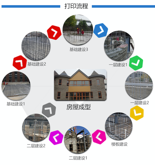 该别墅的打印原材料为普通标号的混凝土和钢筋,地基和墙体用钢筋20吨,C30混凝土380立方米。墙体楼层板都按规范要求用钢筋绑扎,采用3D打印机直接浇筑成型技术,全程由电脑程序操控。相较于传统的建筑方法,3D打印建筑几乎没有原料浪费,工业垃圾少,从而降低工程总造价。