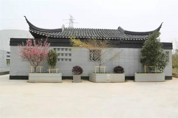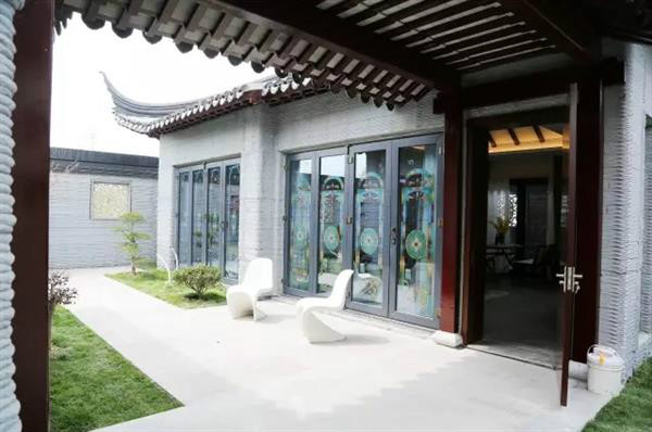 2016年3月,中国建筑公司盈创科技完工两幢面积分别为80、130平方米的3D打印中式庭院,造价为40万元。该建筑的设计和建造由董事长马义和亲自操刀,按照3D打印建筑技术的特性,整体建筑设计超越了原有苏州园林的古建筑体结构和布局,将现代审美元素和高科技技术结合在一起。
