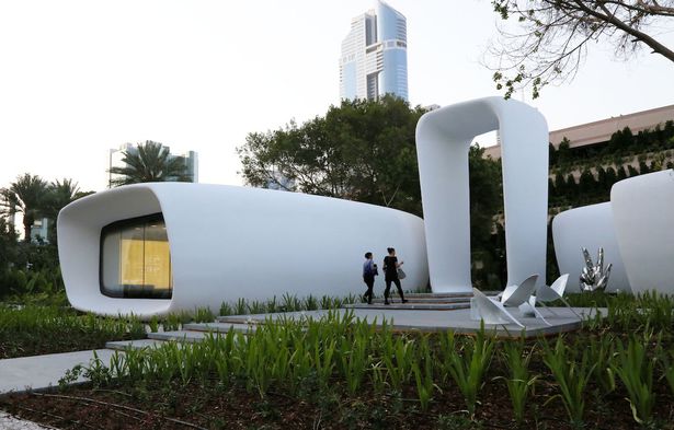 2016年5月24日,全球首座3D打印的办公室在阿联酋迪拜国际金融中心落成。该单层建筑占地面积为250平方米,打印材料为一种特殊的水泥混合物,施工时长仅为17天,总造价1.4万美元(约合9.3万元人民币)。该建筑的各个部件由一台高6米、长36米、宽12米的巨型3D打印机制造。中国公司盈创科技负责3D打印了该建筑的主体部分,后由施工方仅用2天拼装而成。