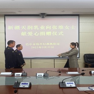 “这是我们昨天一天的全部销售额,希望能通过你们转交给张维女士,同时祝她早日康复”。3月31日,新疆天润乳业巴中分公司总经理李晓芳将5000多元的义卖款项,给到了巴中市综合行政执法局机关党委书记苟东的手中,希望通过他们将爱心转交给张维。