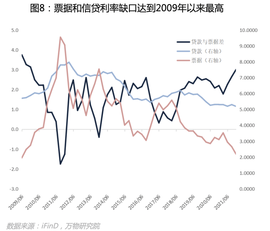 金融周期极度紧缩,未能有效发挥逆周期调节的作用。从银行的角度来考虑,虽然资产端的社融规模保持了10%以上的增速,但大部分都用于负债端M2的扩张,只有少数部分流入实体经济,而这部分资金并不足以抵消PPI高企所带来的通胀影响。因而,虽然数据上来看社融增速保持平稳,但对于实体经济来说,其实已经陷入深度收缩的状态,未能发挥逆周期调节的作用。