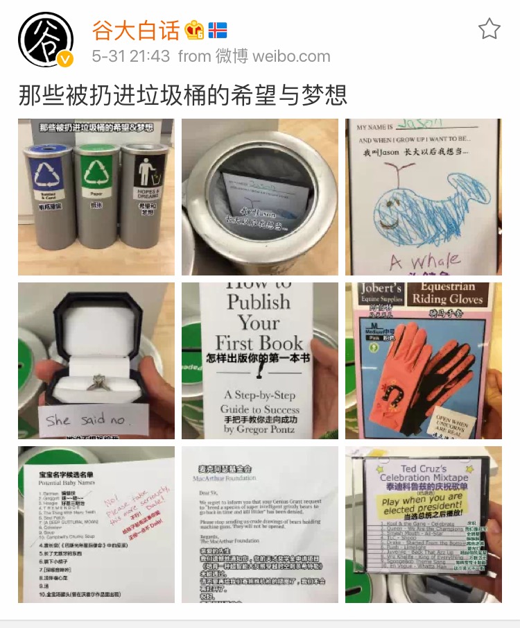 这是说他做了一个专门用来抛弃希望与梦想的垃圾桶……垃圾分类就该这样啊,多么实用!
