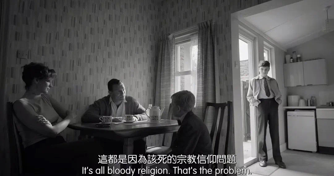 这是一场不是“我们”就是“他们”的对立,所以在电影中,身为新教徒的巴迪一家,不断被激进的新教徒邻居逼迫着站队。