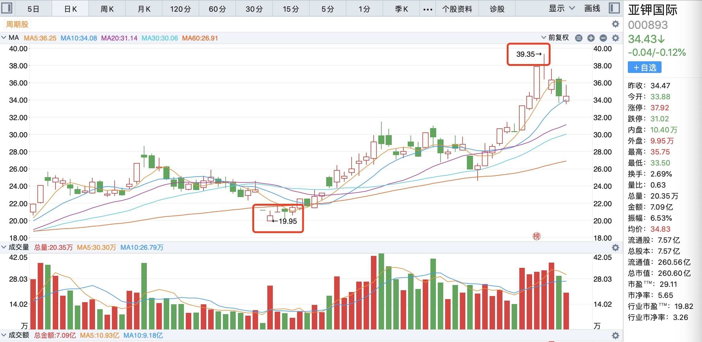 受俄乌局势影响,国内钾肥现货价近日已打破自2008年以来的历史新高,相比2021年低点实现翻倍。钾肥龙头股亚钾国际今年1月28日以来股价接近翻倍,自2018年最低点迄今累计最高涨幅更是达到1157%。