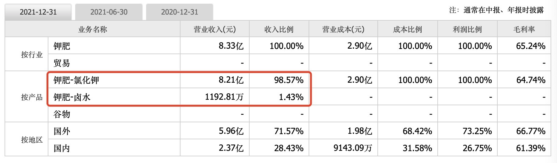 公开资料显示,亚钾国际在2019年国富投资入主后相继剥离谷物贸易、船运业务等原有业务,聚焦钾矿开采、钾肥生产与销售业务,成功转型并聚焦钾肥业务。目前,公司钾肥产品营收占比为99%。