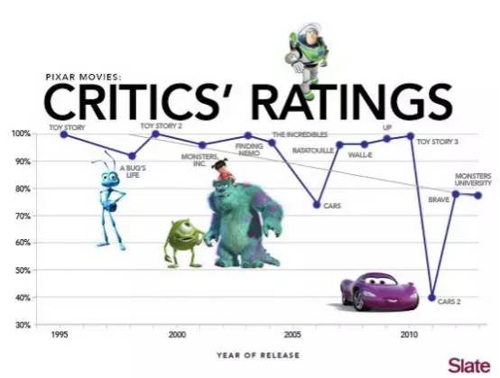 皮克斯向来是以创意知名。其团队不屑于好莱坞工业化制作流程,总是在尝试新的事物,注重用户体验。但是这与在商场驰骋几十年的迪士尼工作经验完全不同。并入迪士尼之后的皮克斯,也在尝试从吸引儿童的角度制作。但是,其作品赢得了票房却失去了口碑。