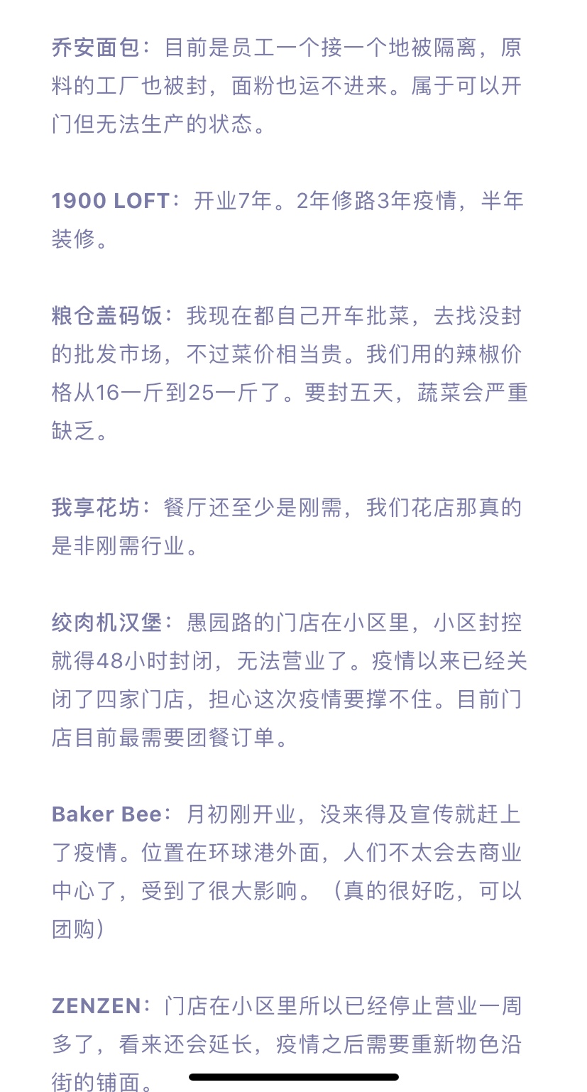 随着越来越多的上海小区进入封闭式管理,餐饮商家的经营也困难重重。“兜着走”的成员咪咪说,“餐饮商家在疫情期间一直很困难,要么是店铺员工被隔离,要么是原料工厂因为封控不能供货,还有的店因为没有足够客源一直亏钱,另外外卖骑手数量也不够,外卖生意很难做。”许多商家都曾向“兜着走”表示,希望通过接单社区团餐撑过这段困难期。