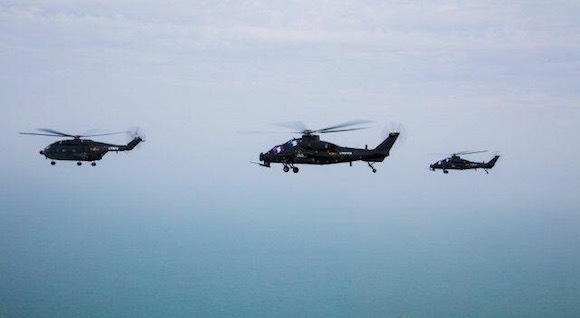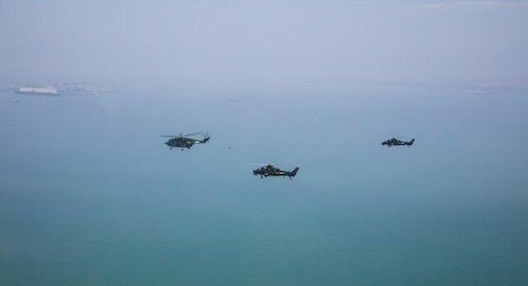 8. 南部战区陆军第42集团军某陆航旅远赴南海之滨开展海上飞行训练,重点围绕海上战斗编组、超低空掠海突防、海上悬停、海上救生、实弹射击等科目实施,提升飞行员实战化作战能力。
