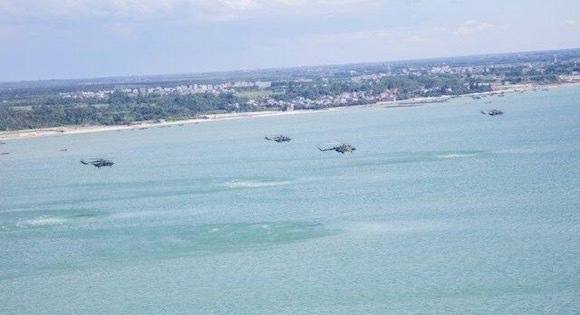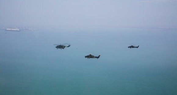 3. 南部战区陆军第42集团军某陆航旅远赴南海之滨开展海上飞行训练,重点围绕海上战斗编组、超低空掠海突防、海上悬停、海上救生、实弹射击等科目实施,提升飞行员实战化作战能力。
