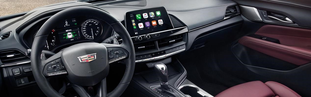 智能互联科技方面,CT4搭载凯迪拉克全新一代移动互联体验CUE,支持Apple CarPlay/Baidu CarLife手机投射功能,车机与手机互联更方便。而多种HMI交互模式、全面升级的车载应用App、更加智能的定制化信息推送及100G/年的终身车机免费流量,则让驾驶者乐享每一段旅程。
