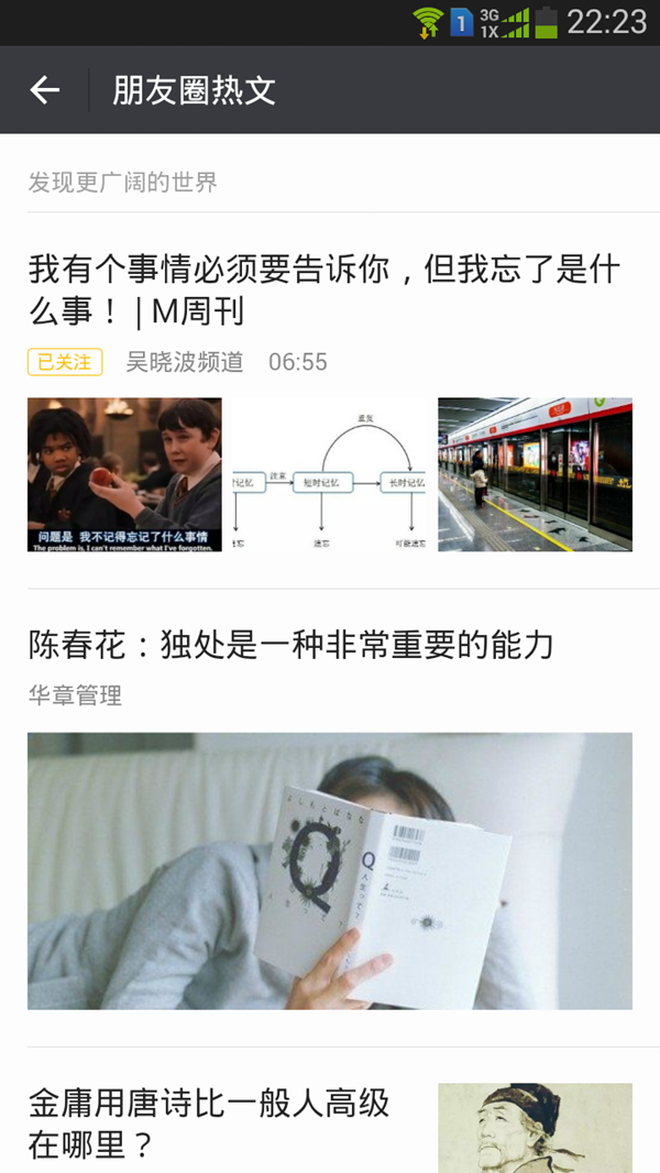 我们知道微信公众号的模式是订阅模式,就跟以前订阅报纸、杂志一样,它吸引用户的依凭是各个公众号的编辑团队。如今,活跃的公众号每天会向订户推送1~2个信息列表,大约有2~5篇长文章。我的使用体验是,即便我订阅某个公众号,也不是对它推送的每篇文章都感兴趣,能打开的更是极少数。也就是说,向我推送文章的编辑们是按照他们的直觉而不是我的兴趣向我推送内容的,这是一个很大的问题。