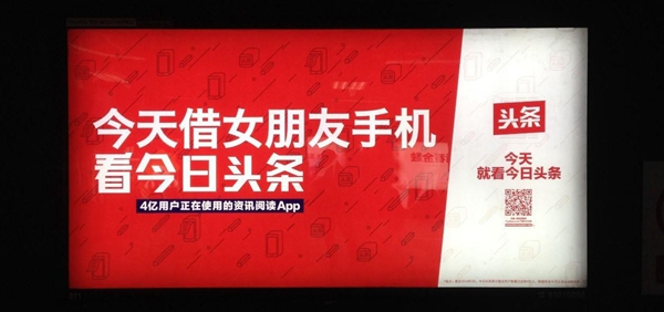 今年,今日头条开始铺天盖地地打广告,其手法被媒体形容为“鬼畜式”洗脑风格。比如: