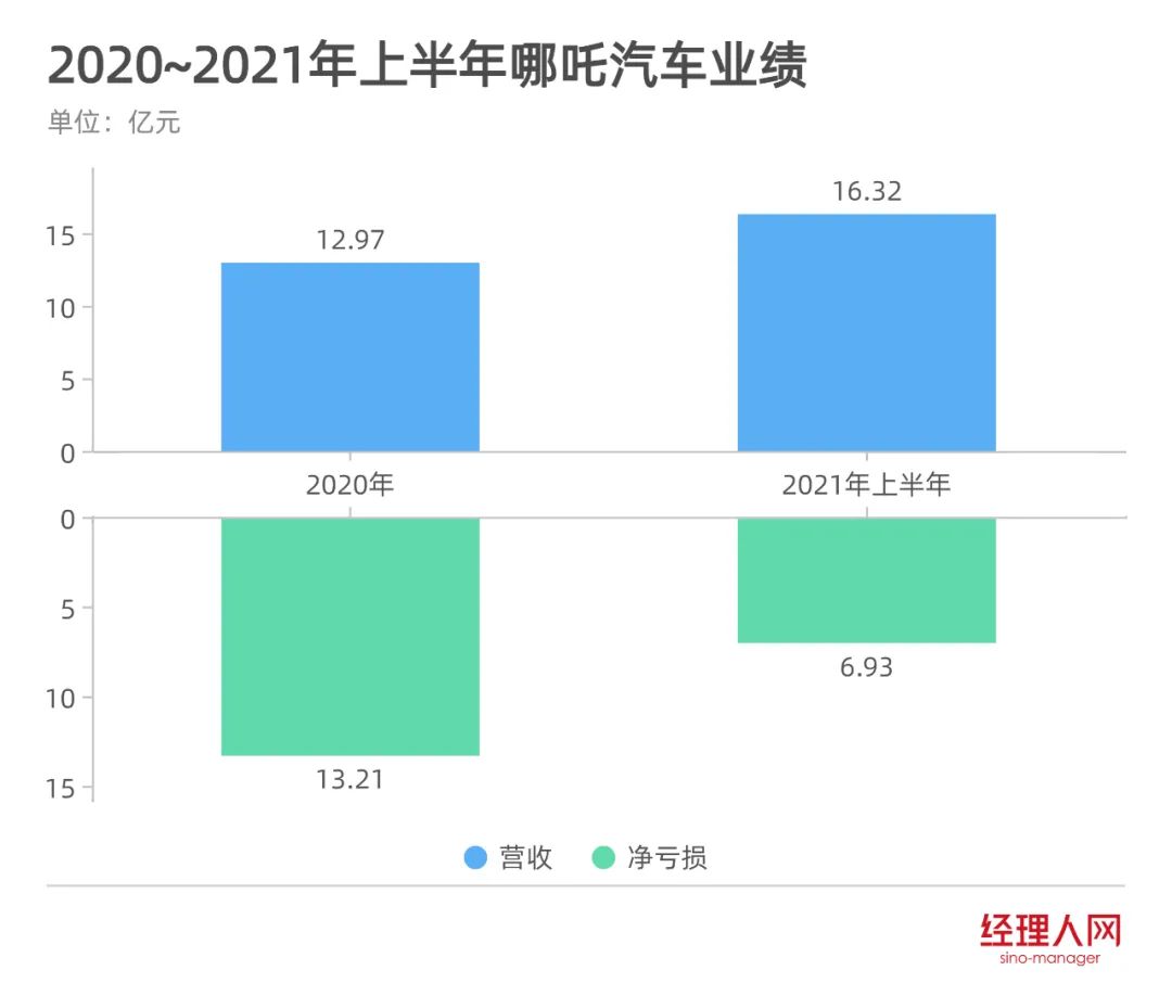 一边是势不可挡,而另一边哪吒汽车仍处于高额亏损的阶段。根据合众汽车股东360集团公告透露的哪吒汽车业绩显示,2020年度哪吒汽车实现营收12.97亿元,净亏损13.21亿元;2021年上半年实现营收16.32亿元,净亏损6.93亿元。