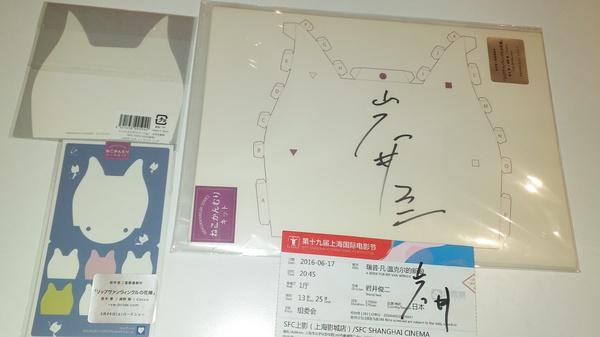 回北京后,看到7月2日岩井俊二导演来北京举办演奏会,我特地跑到举办地天桥艺术中心,买了《新娘》的猫头周边,请岩井俊二导演在猫头和上海电影节电影票上签了名。算是了了一桩心愿。