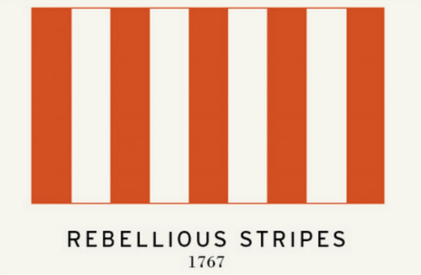 1767年,由持不同政见者秘密缔结的“自由之子”协会设计了这面旗帜。面上9个条纹代表着1765年参与抵制国会印花税法案的9个殖民地。↓